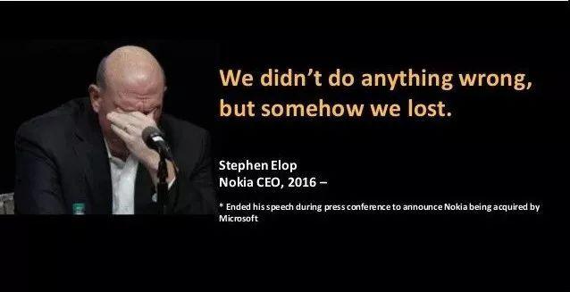 这一幕,与十几年前诺基亚手机的退场如出一辙。时任诺基亚 CEO 约玛 · 奥利拉说," 我们并没有做错什么,但不知为何,我们还是输了。" 何其惆怅,何其无奈,何其困惑。