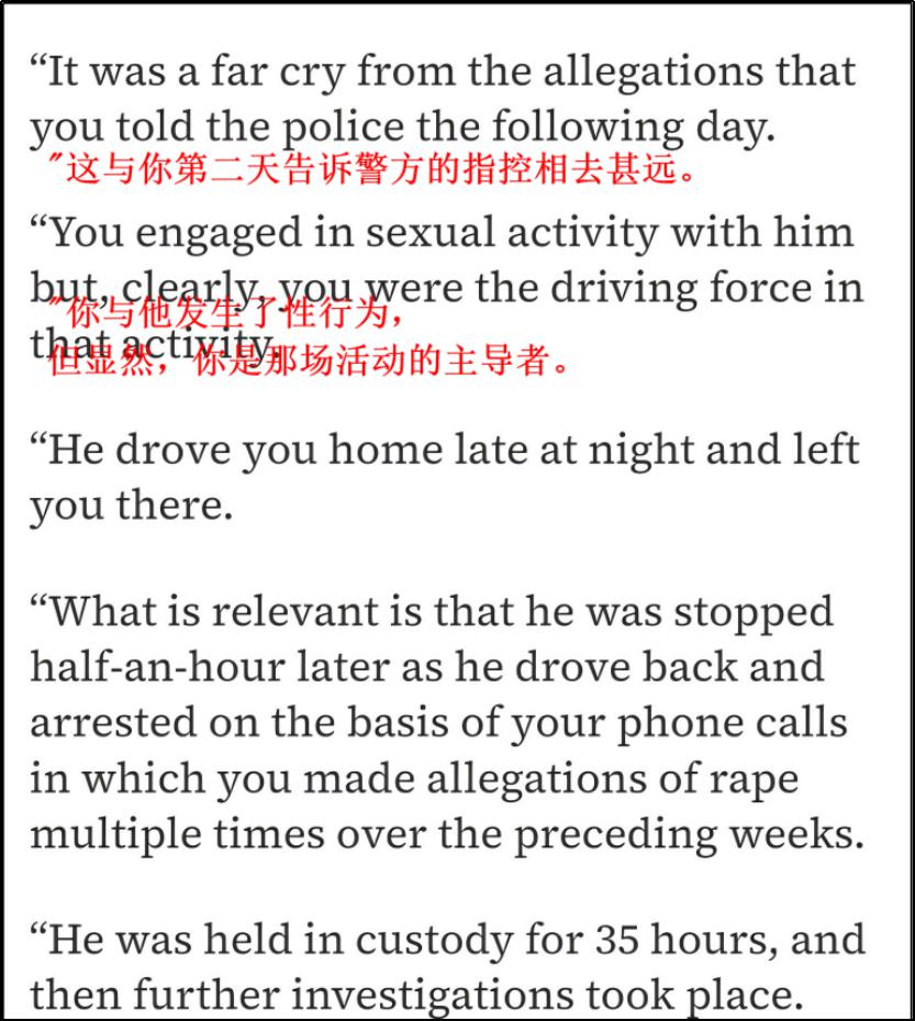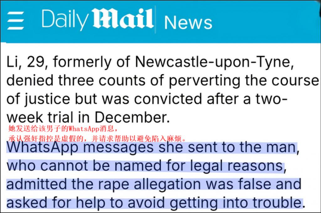 也进一步说明,在英国告不成强奸不代表真是诬告。