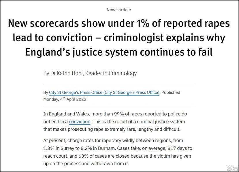 在英格兰和威尔士,超过 99% 的报案不会以定罪告终,也就是说强奸定罪率确实极低。