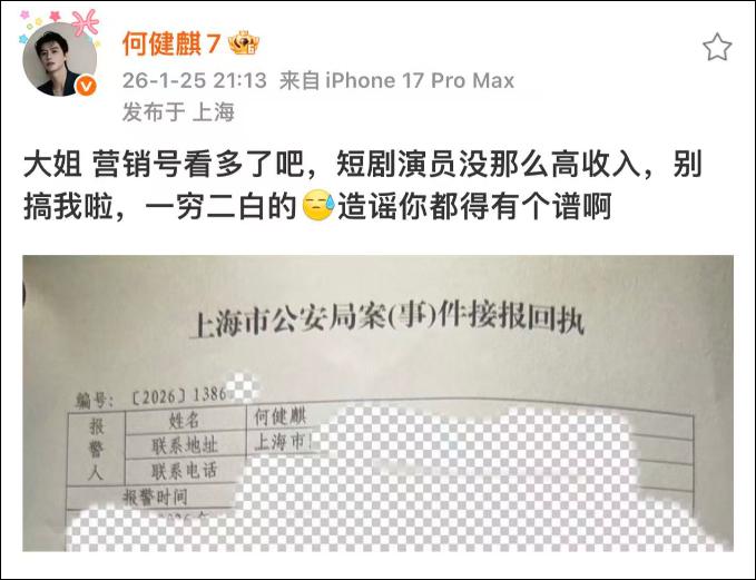 1 月 25 日晚,疑似短剧演员何健麒的女友 " 何健麒的债 " 实名举报其涉毒,引发网友热议。指控内容包括:2021 年同居期间多次吸毒;2021 年 10 月因涉毒被北京海淀警方带走,接受尿检、血检和毛发检测,办案记录留存于海淀公安执法办案管理中心;为掩盖检测痕迹剃发,后期以接发辫子造型掩饰 ……