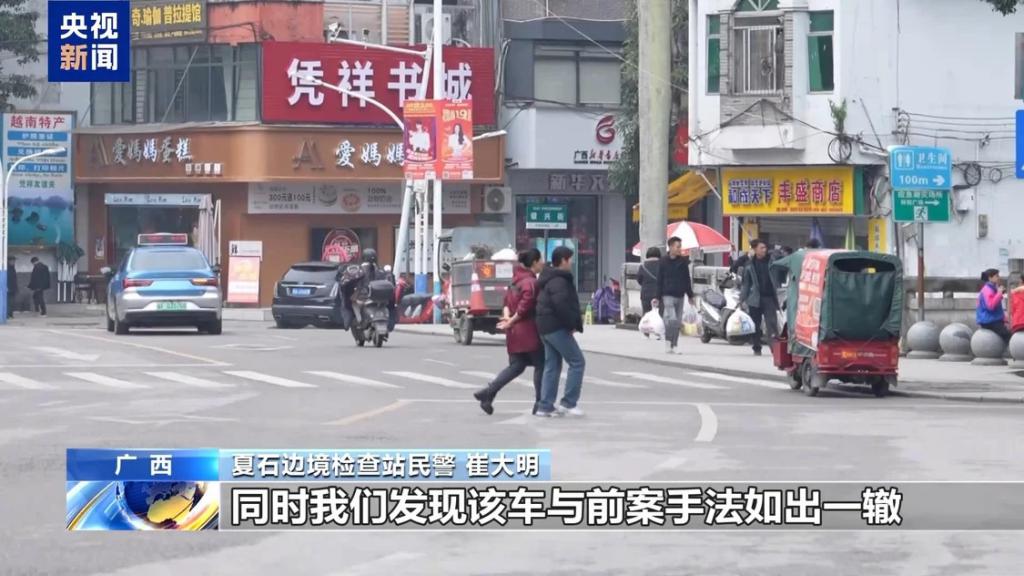 夏石边境检查站民警 庹建军:这辆车从南宁出发后,并未选择常规主干道,而是在一辆疑似“探路”或“指挥”的嫌疑车辆引导下,频繁驶入乡村道路,行为刻意绕开边境检查关卡,迂回向凭祥方向行进,躲避检查的意图明显。