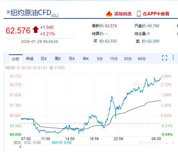 纽约原油、布伦特原油期货涨超 3%。