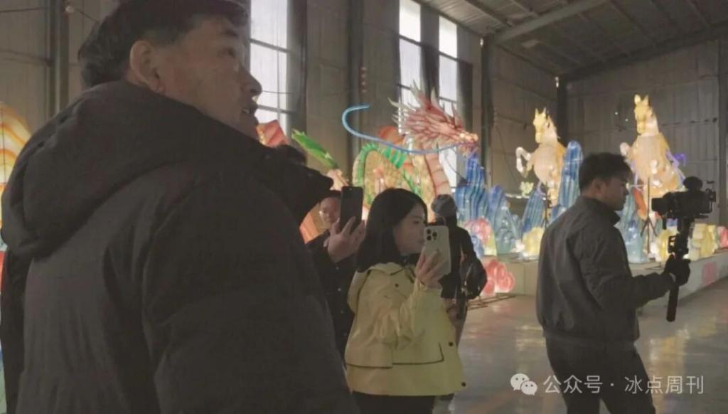 2025 年 11 月,朱之文参观花灯厂,四周是朋友们在直播。中青报 · 中青网记者 玄增星 / 摄