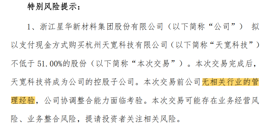 星华新材坦诚, "无相关行业的管理经验",这一表述直或引发另一潜在风险——整合风险。