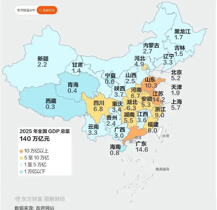 我们的龙头老大,广东 2025 年 GDP 是 14.58 万亿,如果单拎出来,放在全球几乎能排到前十大经济体。
