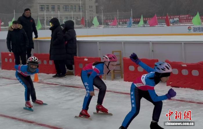 乌鲁木齐市第 137 小学的学生参与速度滑冰比赛。马子航 摄