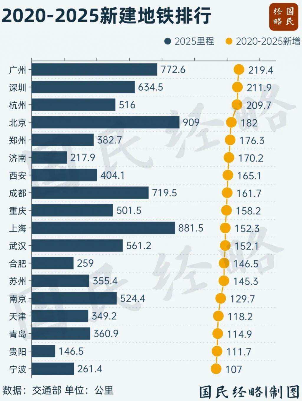 地铁 20 强市,谁在领跑?