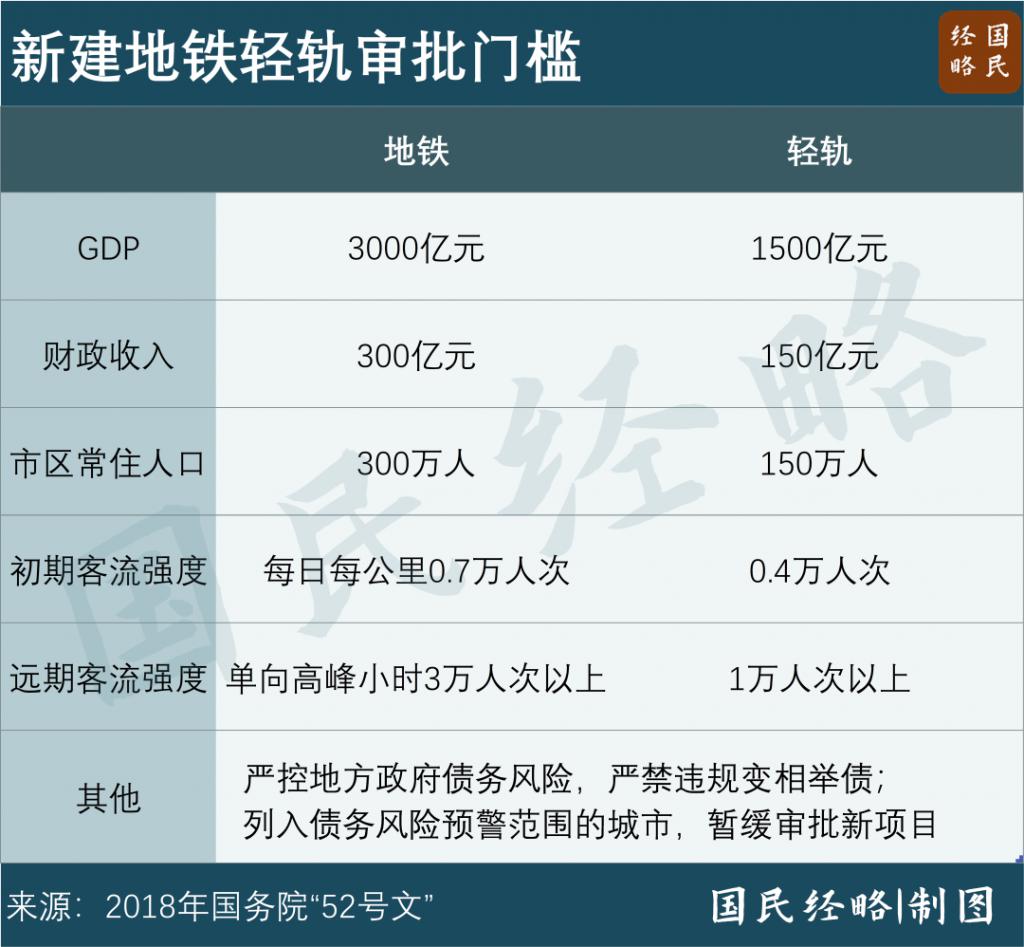 地铁建设有三大硬核门槛:GDP3000 亿元以上、市区人口 300 万以上、地方一般预算收入 300 亿以上。