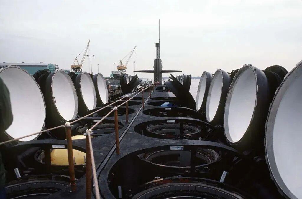 ▲美国俄亥俄级弹道导弹潜艇上敞开的、未经改装的发射管。(图源:美国空军)