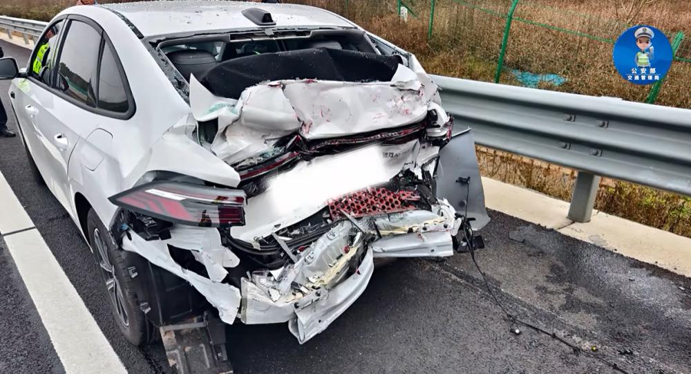 2 月 7 日,公安部交通管理局通报了一起事故:2026 年 2 月 1 日,江西樟吉高速。裴某驾车载着朋友在慢车道行驶,车子忽然减速并停了下来,随后被后方一辆躲避不及的大货车猛烈追尾撞击。事故致两车受损,裴某的车受损极为严重,幸无人员伤亡。