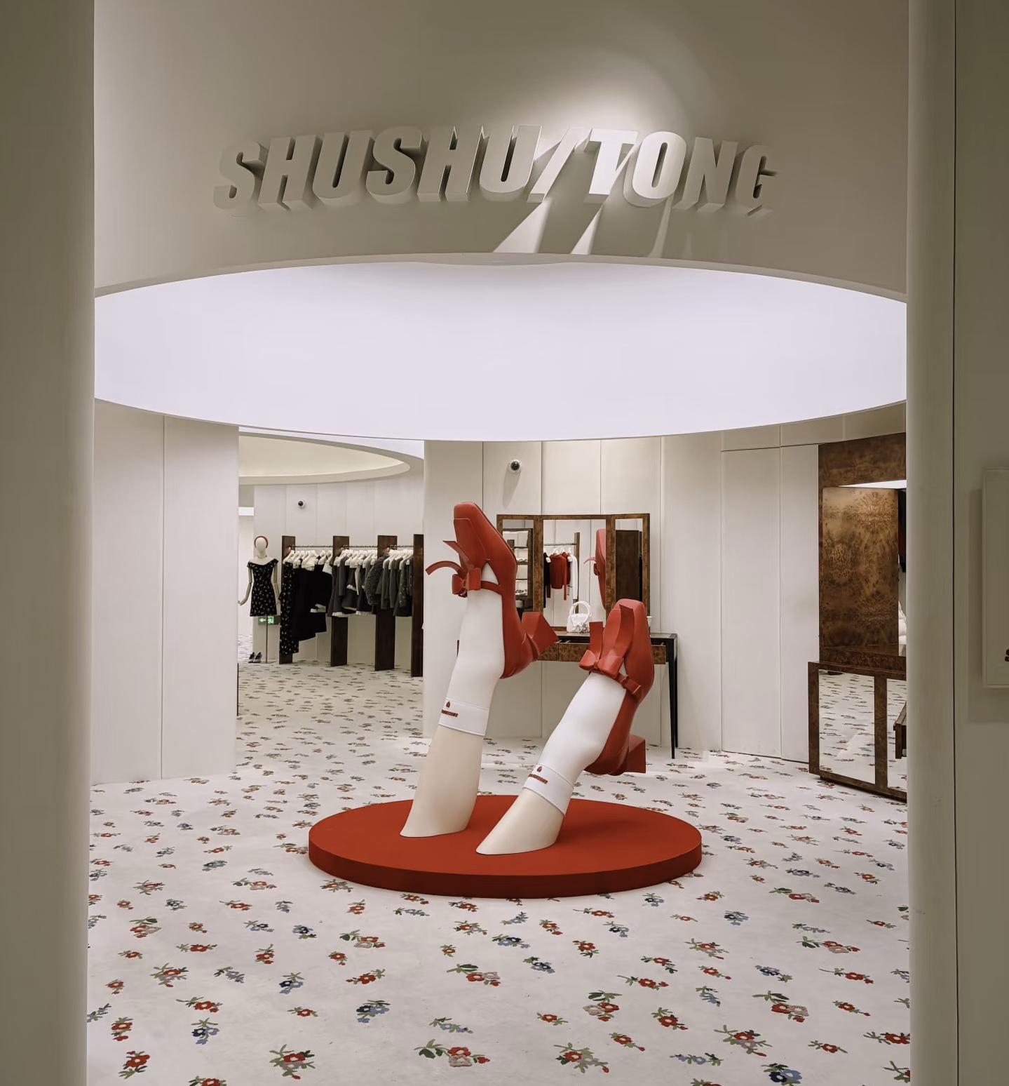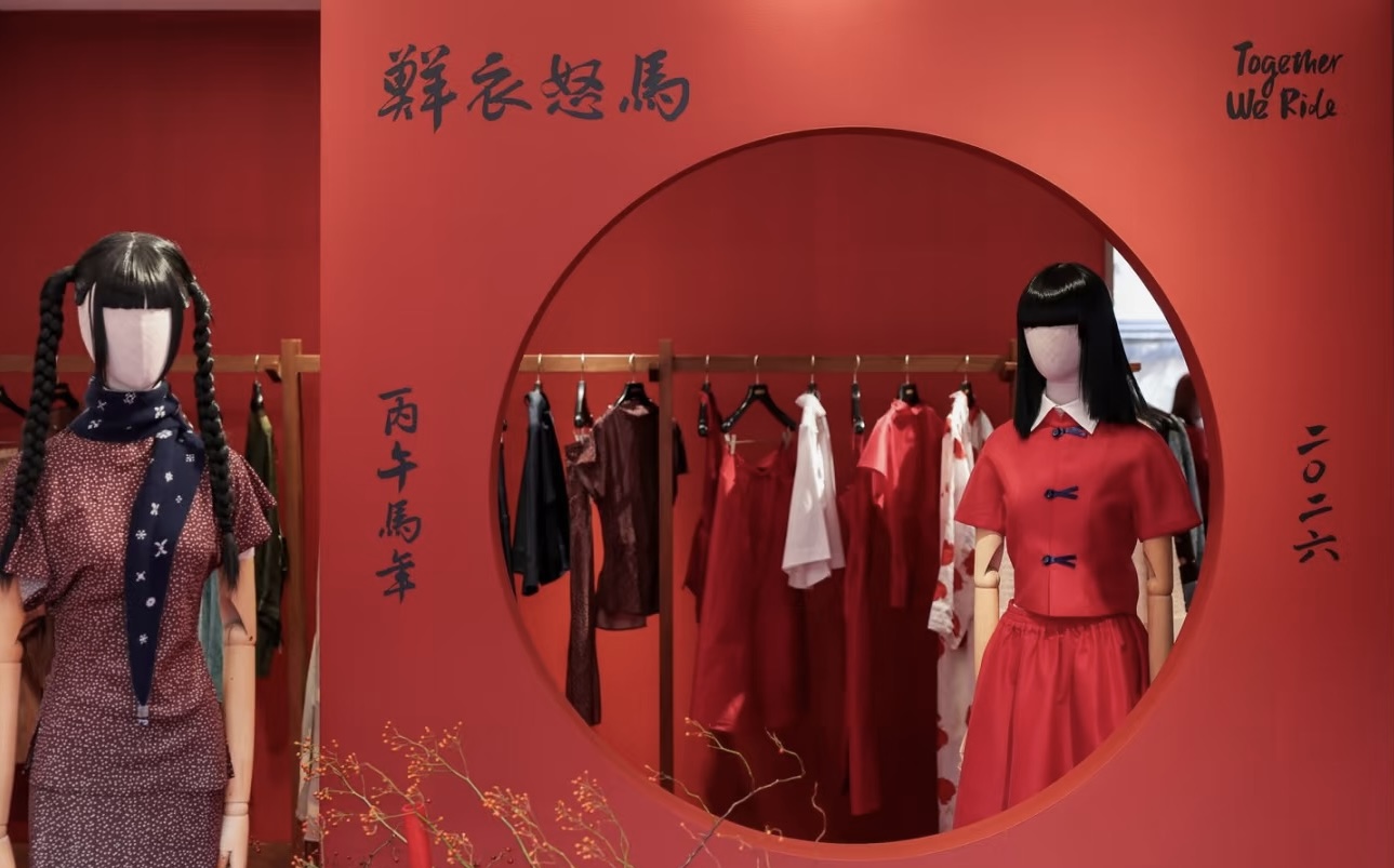 类似地,蕾虎与SHUSHU/TONG的门店也都借着春节的时机做了适合打卡的新春布置。SHUSHU/TONG还特地在备货时多准备了海外顾客喜欢的针织衫、连衣裙和适合送礼的小饰品。