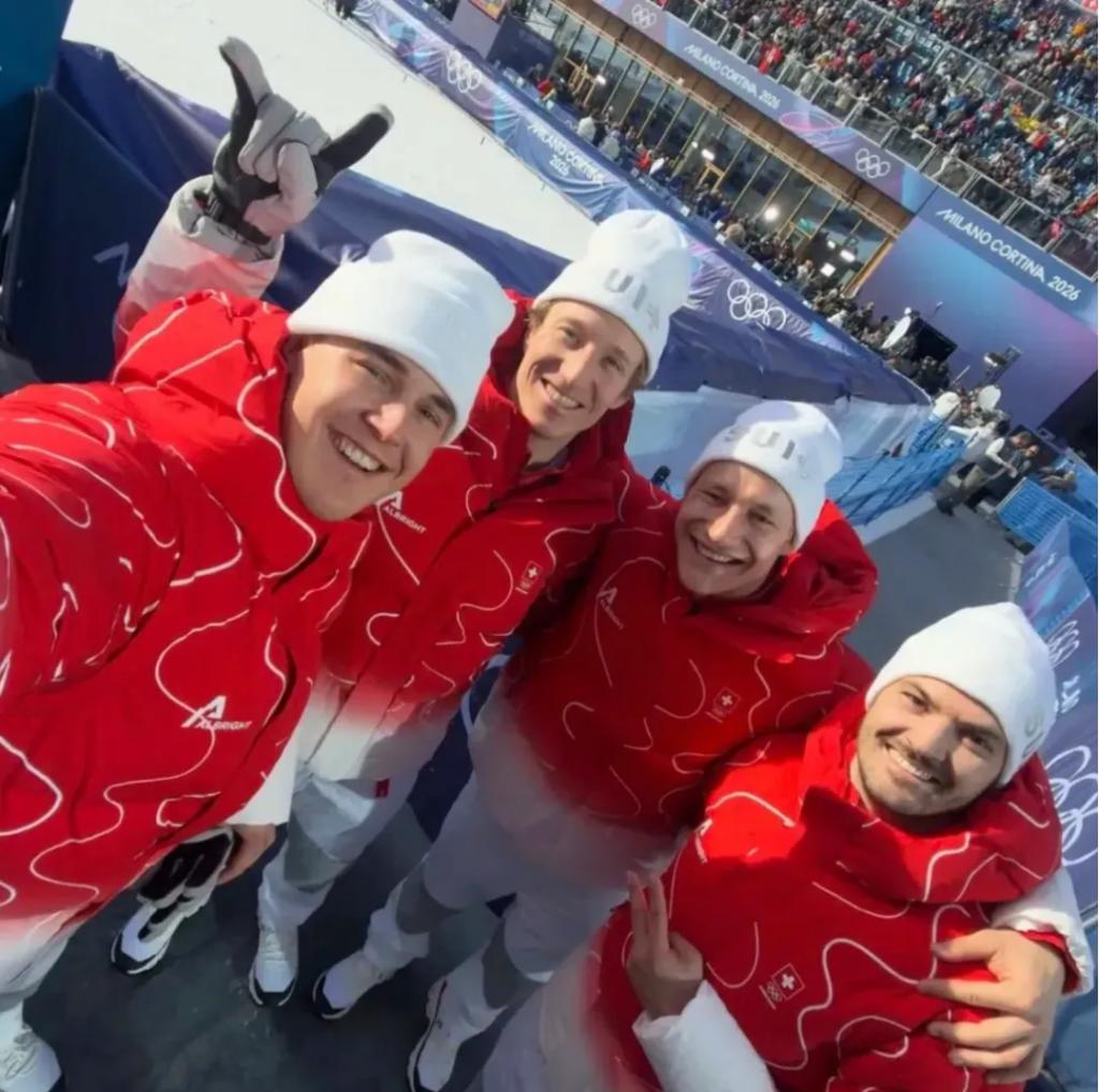 · 瑞士滑雪队赛后自拍,左一为冯 · 阿尔门。(瑞士滑雪队官方账号)