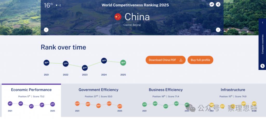 我们先来看一组数据:据瑞士国际管理发展学院(IMD)发布的《2025 年全球竞争力报告》,中国以总分 82.1 分位列全球第 16 名。其中,经济表现上,中国以 73.2 分位列全球第 5,在基础设施建设上,则以 74.9 分排名第 15。