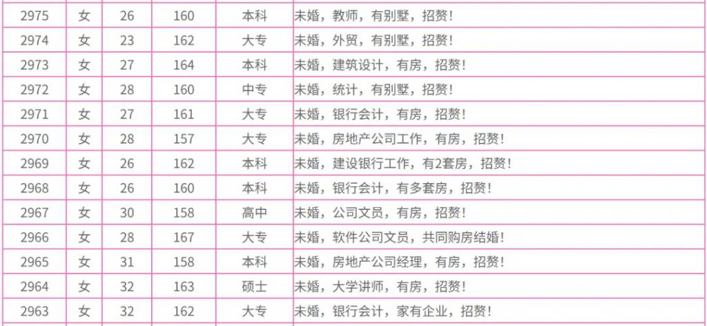金点子婚介所官网的部分招赘女会员信息 / 受访者供图