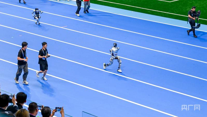 " 行者泰山 " 参加 2025 世界人形机器人运动会 1500 米竞赛(央广网发 韩廉跃 摄)
