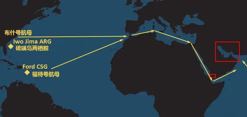 按 20 节平均航速计算,最早需到 2 月 19 日才能通过直布罗陀海峡,抵达战区可能需至 2 月下旬甚至 3 月初。即便双航母会合,其战力仍显捉襟见肘。