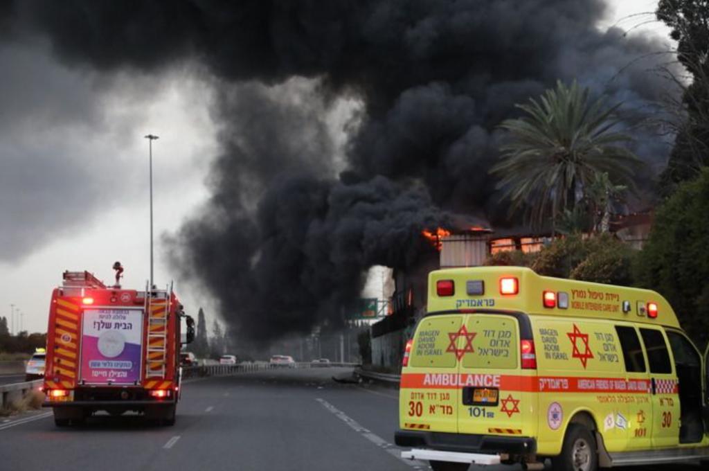 3 月 13 日,在以色列中部城市霍隆,遭伊朗导弹袭击的一处地点冒出滚滚浓烟。图源:新华社
