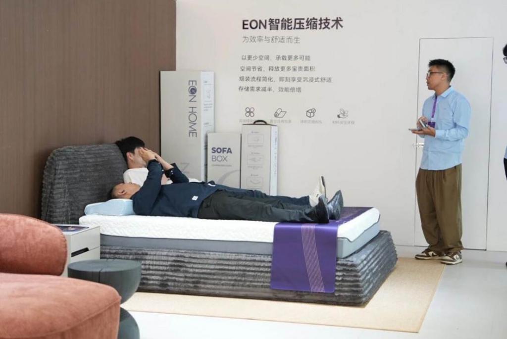 宜奥家居则展现了 " 广货 " 解决全球客户痛点的智慧。宜奥家居的展位上,一张床垫经压缩包装后,比正常体积缩小了 70%。" 为减少贸易中转费用,我们现在生产的沙发和床垫都能压缩打卷。" 销售经理李女士说," 解决客户的痛点才能不断赢得信任支持。"