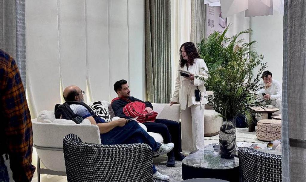 展位上,一款名为 " 乙尊 " 的沙发,造型灵感来自古典陈器,线条简洁却韵味悠长。