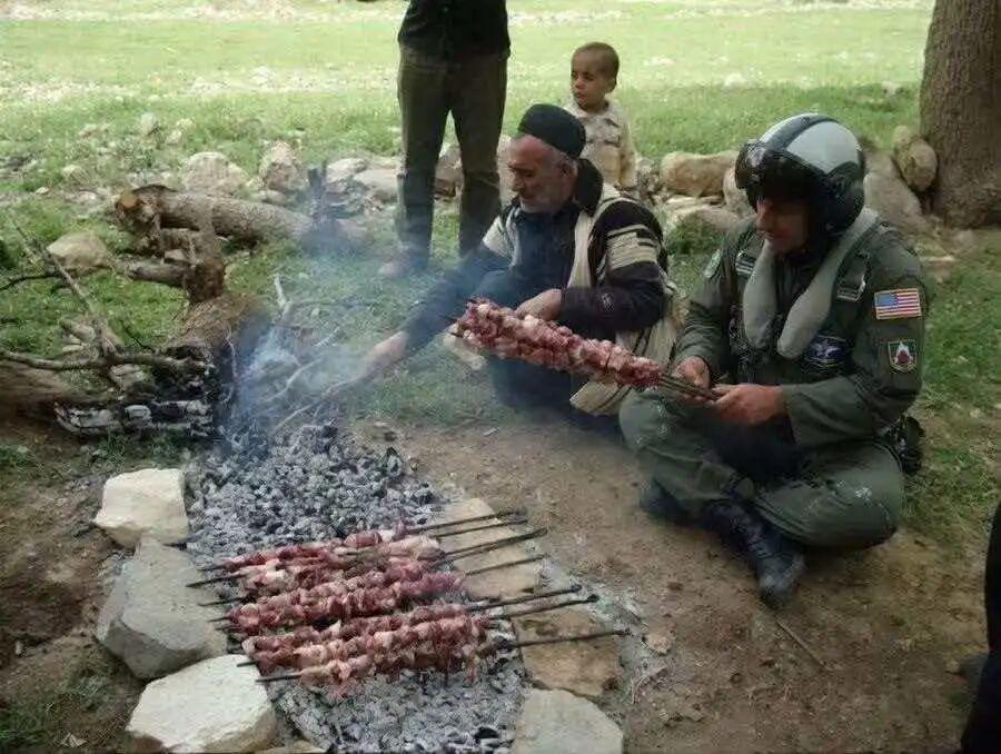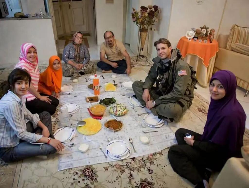 很多伊朗人贴出照片," 显示 " 美国飞行员在伊朗做客,和伊朗人共进晚餐,一起吃烤肉。