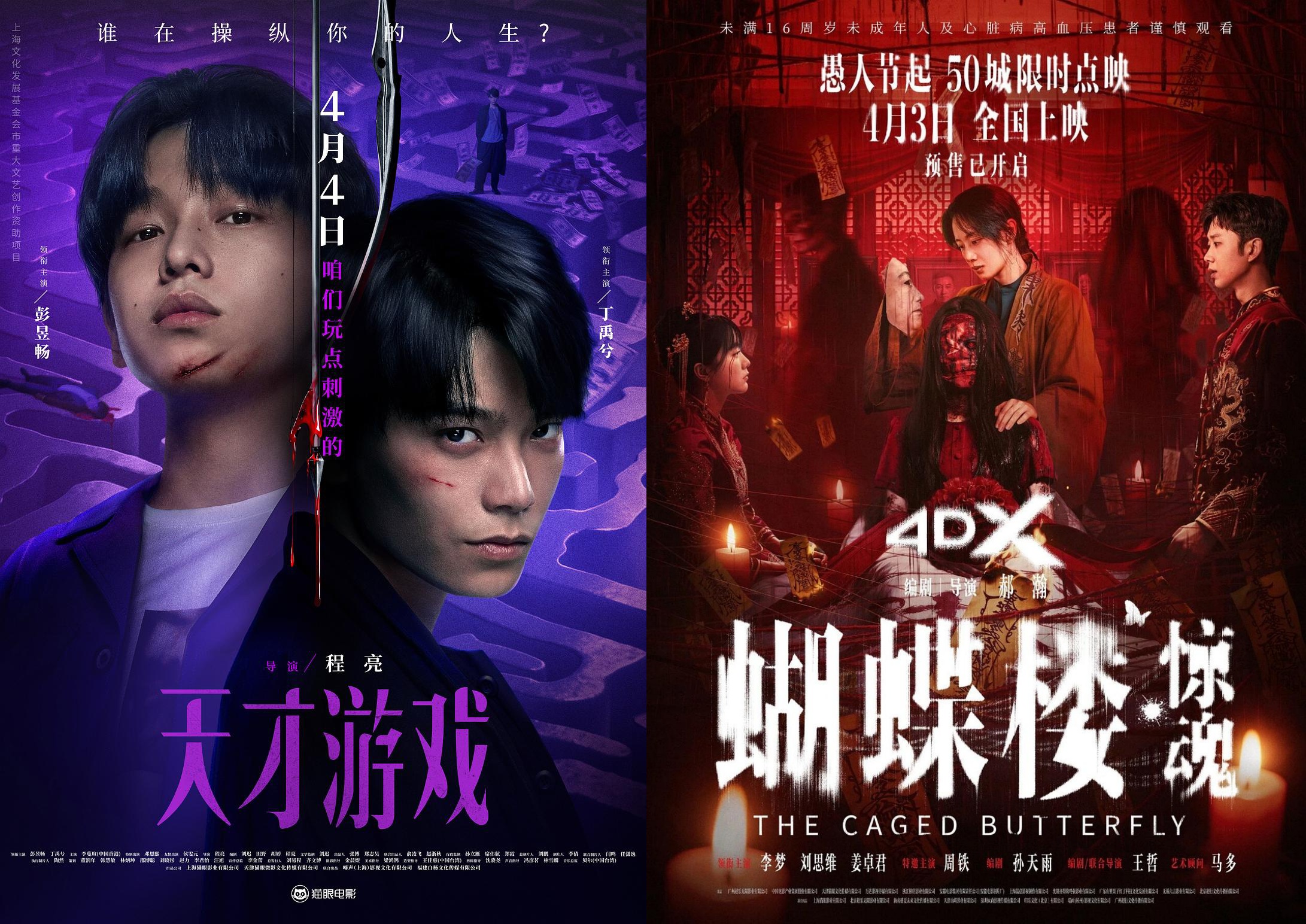 除了三部女性题材作品,另外两部新片试图丰富类型供给,却均未能突破圈层,票房表现平淡。悬疑片《天才游戏》由彭昱畅和丁禹兮主演,但两人的流量并未有效转化为票房成绩,最终以3189.5万位列档期第四名,虽然成为了今年国产片悬疑片票房第一,但对比《消失的她》《匿杀》等往年爆款的成绩,国产悬疑片已明显进入瓶颈期。另一边,受2024年《鸳鸯楼·惊魂》的破亿成绩带动,市场出现大量国产恐怖片,今年清明节档集中上映了4部,其中《蝴蝶楼·惊魂》作为《鸳鸯楼·惊魂》续作,未能实现类型突破,仅依靠前作IP效力和主演李梦回归出演的影响,最终拿下2510.9万的票房,预测总票房难追前作,破亿基本无望。