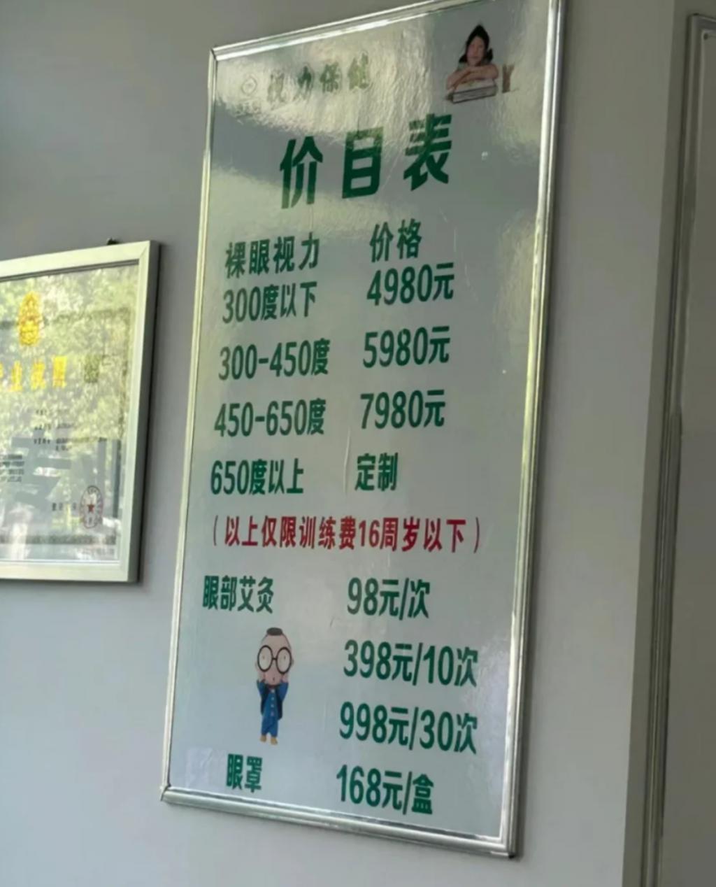 图 | 视力保健班的报价表