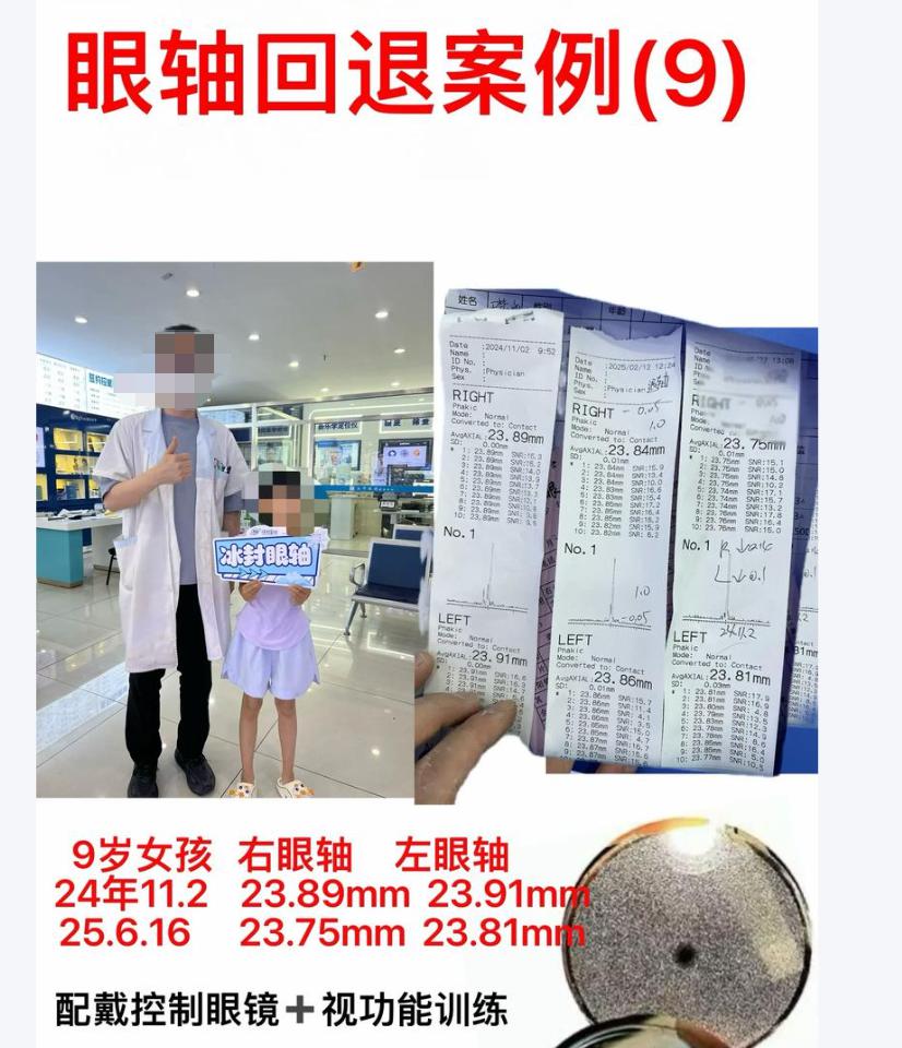 当发现自己盲目下单,跟风防控没用以后,她不再盲目求助家长群,而是带乐乐定期去医院复查,听从医生指导,慢慢让乐乐的眼轴增长放缓,三个月仅增长 0.1mm,视力也从 0.5 提升至 0.6,厌学走神的情况也彻底改善。