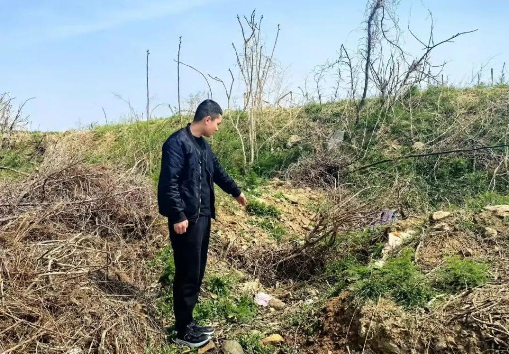 △田先生展示母亲被掩埋的荒地。受访者供图。