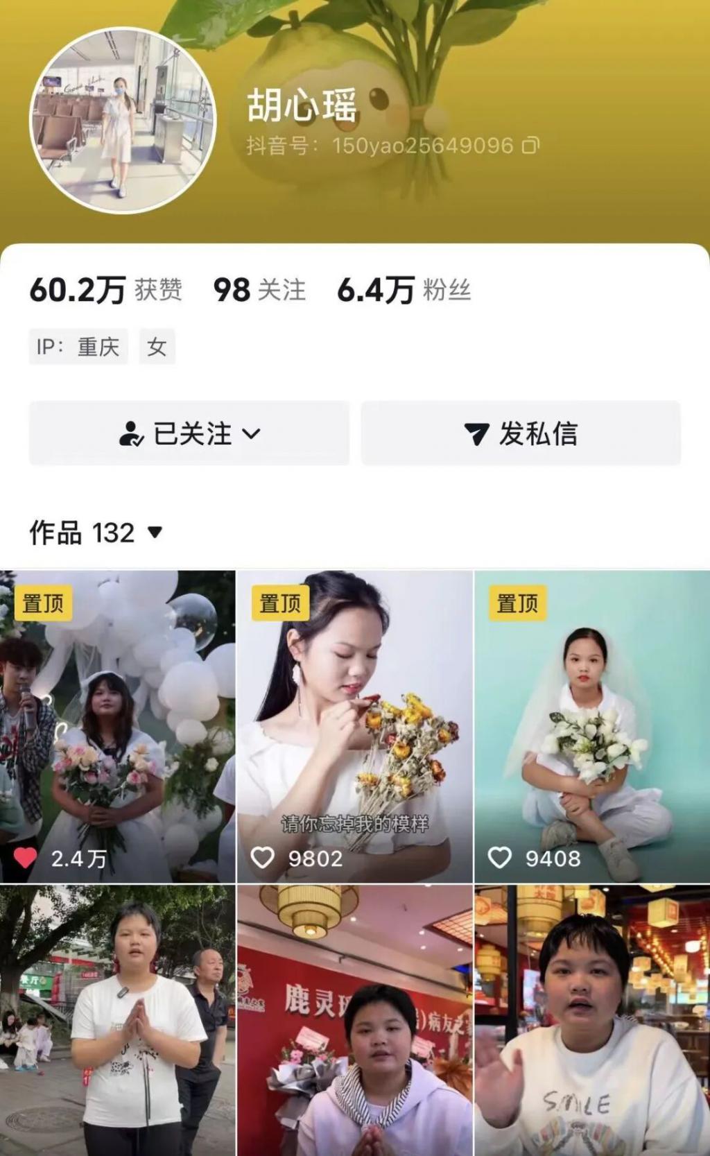 胡心瑶的抖音账号