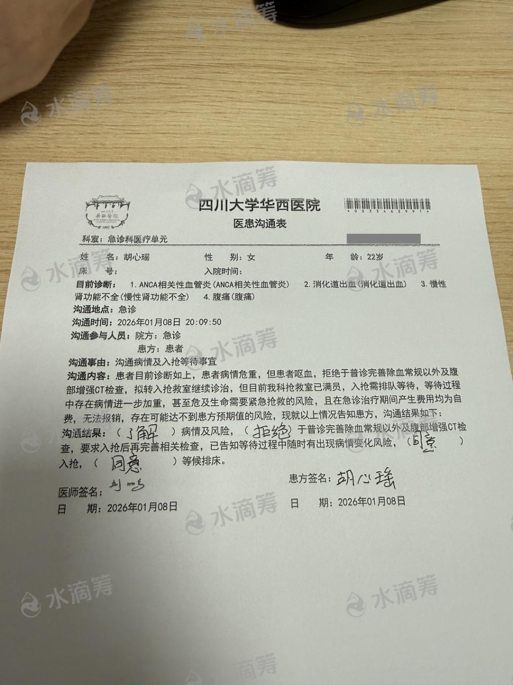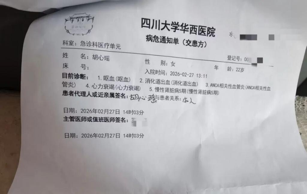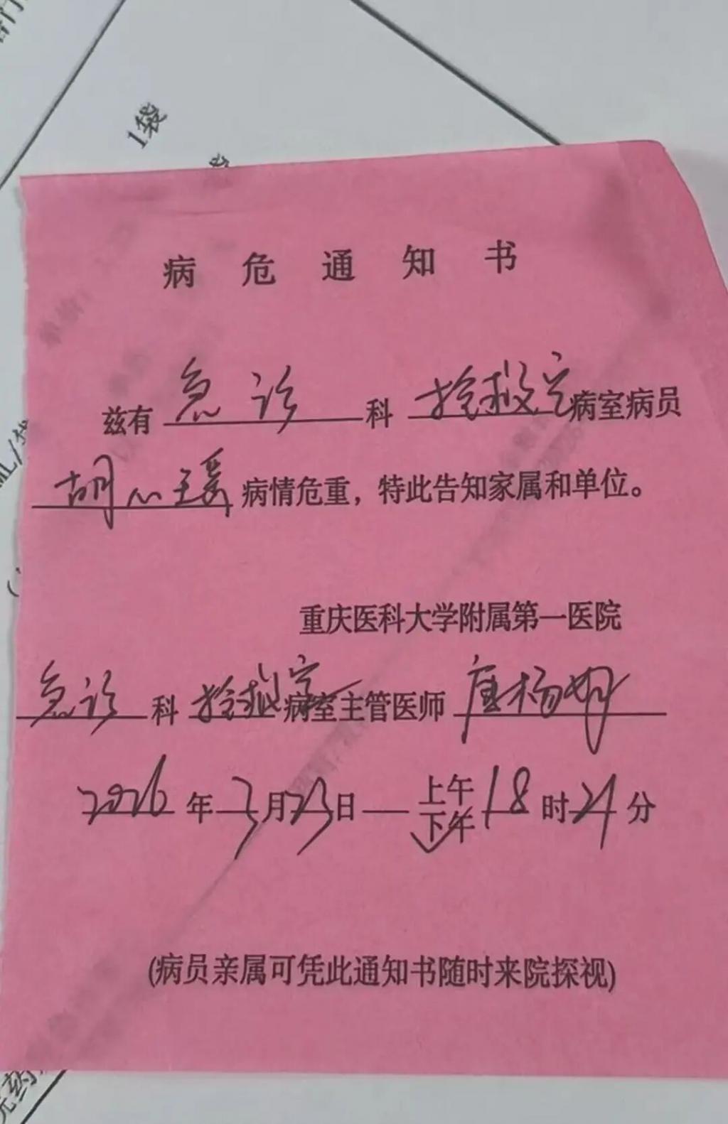 胡心瑶的病危通知书