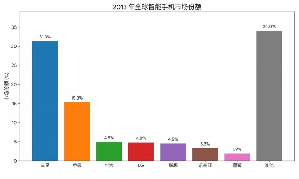 在全球智能手机市场的份额已跌至约 3%,彻底跌出前五,被三星、苹果以及众多安卓品牌远远甩开。