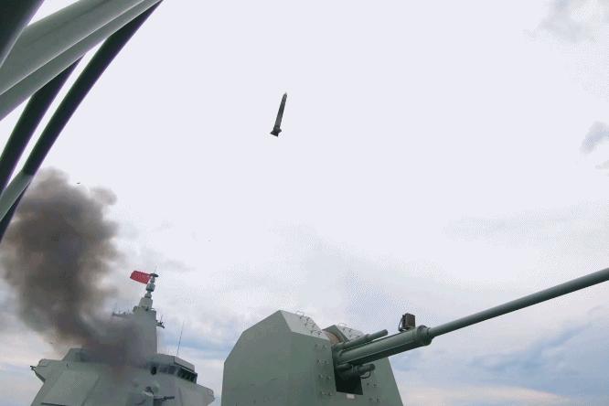 一声令下,导弹如穿云利剑直奔目标,五发五中,向世人展示了 " 万吨大驱 " 的作战能力。