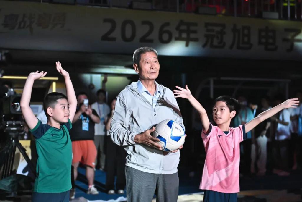 五位代表将足球接续传递给中圈的足球少年,完成了仪式感拉满的庄重传承。足球少年将皮球踢向越秀山体育场地标建筑主楼,随后的裸眼 3D 灯光秀 + 墙体秀,在主楼外墙以光影形式回溯了新中国成立后广东足球的荣耀时刻:1954 年在广州成立新中国首支地方专业队、1958 年首次组建广东队、1975 年首获全运会男足冠军、1979 年首届省港杯夺冠、1991 年举办首届女足世界杯、新时代足球根基深植民间,南派风格再起高潮,最终以粤超揭幕收尾。象征粤超既要继承南粤足球的光荣传统,不忘初心与历史荣耀,更要以全新形态开创广东足球光明的未来。