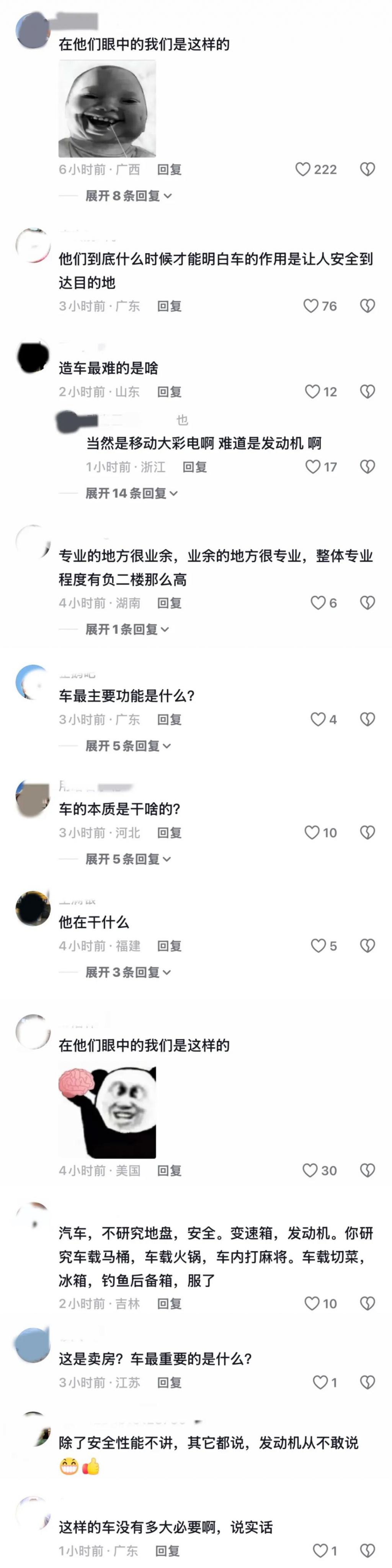 不过,也有少数网友认为,此功能别出心裁,露营的时候开出去玩就很方便。