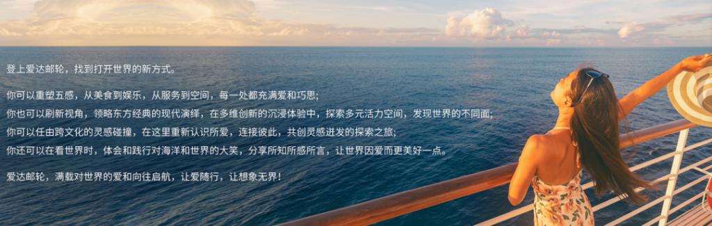 邮轮旅行的宣传广告。图 / 爱达邮轮官网