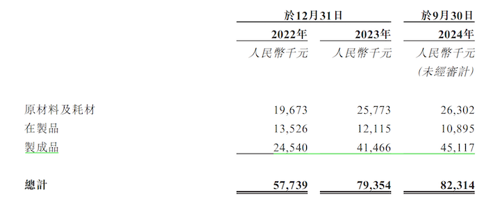 界面新闻注意到,大行科工的库存规模上升明显,2023年同比增加37.44%,截至2024年9月30日为8231.4万元,其中制成品的占比达55%。