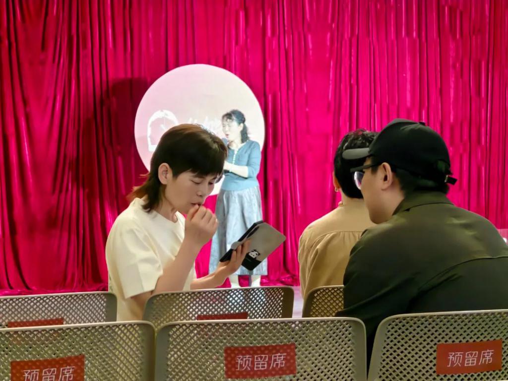 候场时还在捋稿子的青柳(左)。(图 / 新周刊)