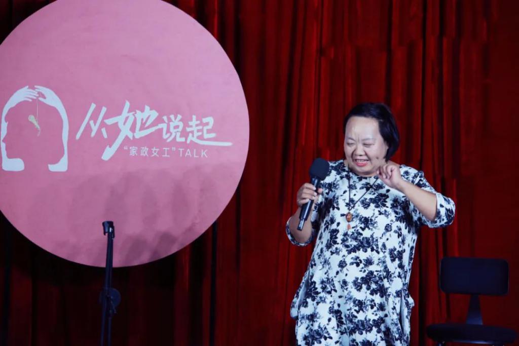 舞台上的施洪丽。(图 / 家政女工 talk)