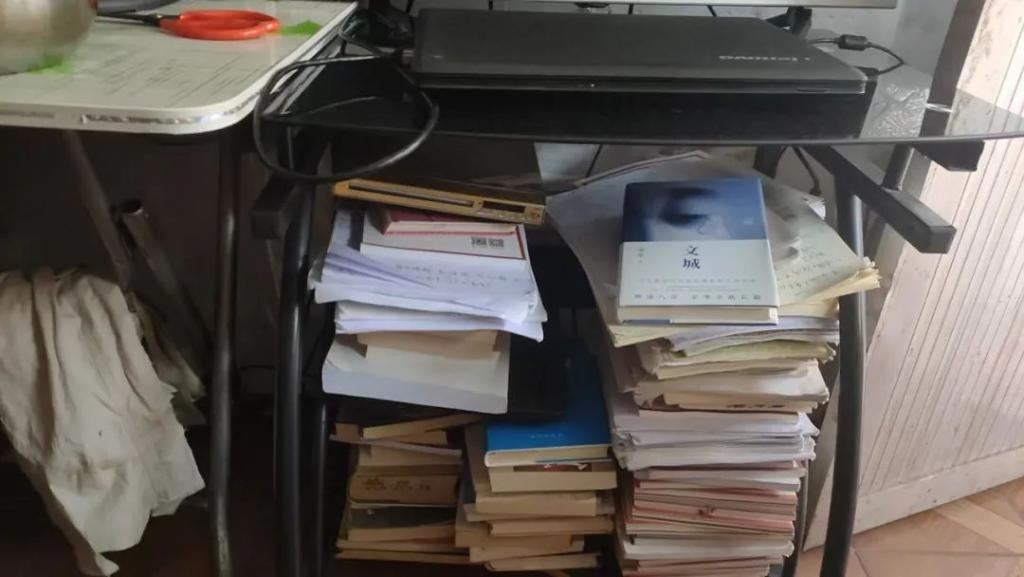 施洪丽日常看的书。她的书桌也是捡的。(图 / 受访者提供)