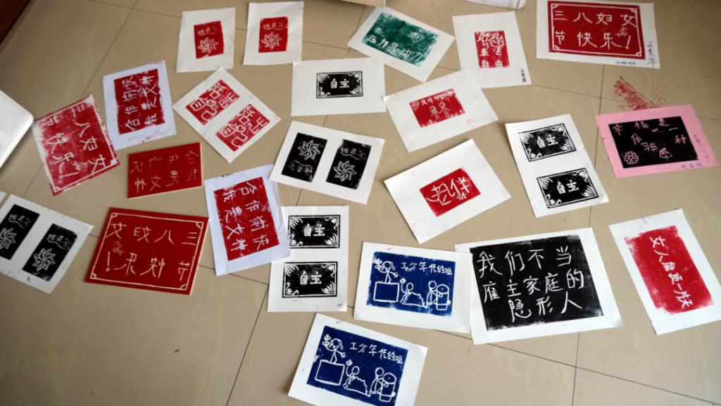 2024 年妇女节,家政女工们一起做的版画。(图 / 受访者提供)