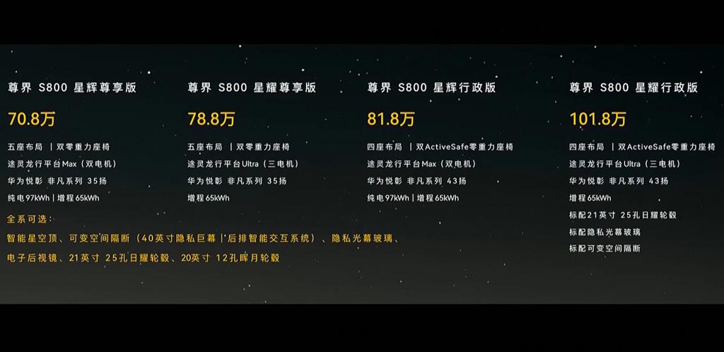 70.8万元起,尊界S800正式上市!余承东曾称:定位是按照1000多万的标准来设计