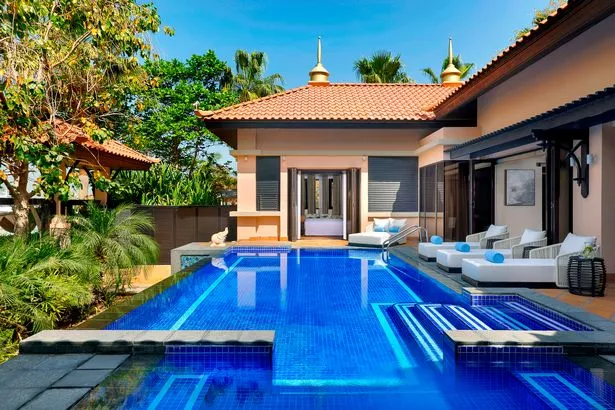 但如果你想要一个酒店海滩,安纳塔拉迪拜棕榈度假村是一个地方。这家五星级酒店坐落在1300英尺的私人海岸线泻湖上,可以通往客房、公寓和阿联酋第一座水上别墅。这里有六家酒吧和餐馆,每天有三次往返迪拜购物中心的班车服务。