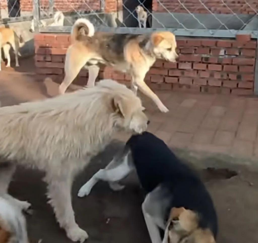 胡子哥说,他从小喜欢狗,现在院子里养了一百多只狗,狗为了争领地、食物和交配经常会打架,院里的狗群已经 " 部落化 " 了。最大体型的狗有一百五六十斤,长毛只有四十多斤,长毛却是这一百多只狗的 " 狗王 "。在爆火的视频中,向长毛低头的黑犬有一百二三十斤,但常常被长毛摁在地上欺负得嗷嗷叫。