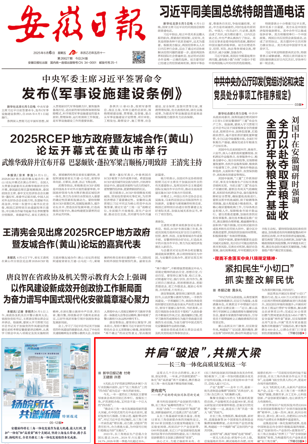 今日出版的《解放日报》《新华日报》《浙江日报》《安徽日报》均在头版刊发《并肩“破浪”,共挑大梁——长三角一体化高质量发展这一年》一文。