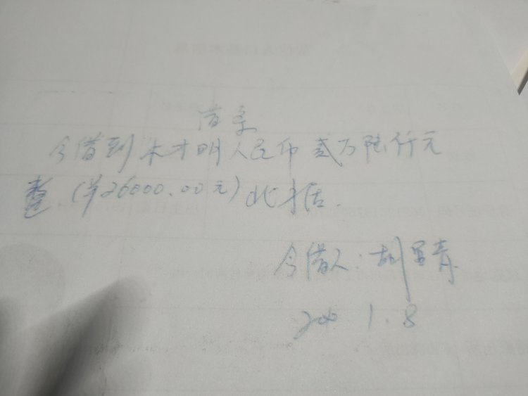 2025年4月4日,江西省赣州市经开区法院作出一审判决:该市上犹县东山镇南河村村民胡显青偿还朱才明两万六千元及利息。法院判案的主要证据是当事人提供的原、被告身份证复印件及一张胡显青所写、落款时间为2010年1月8日的借条。