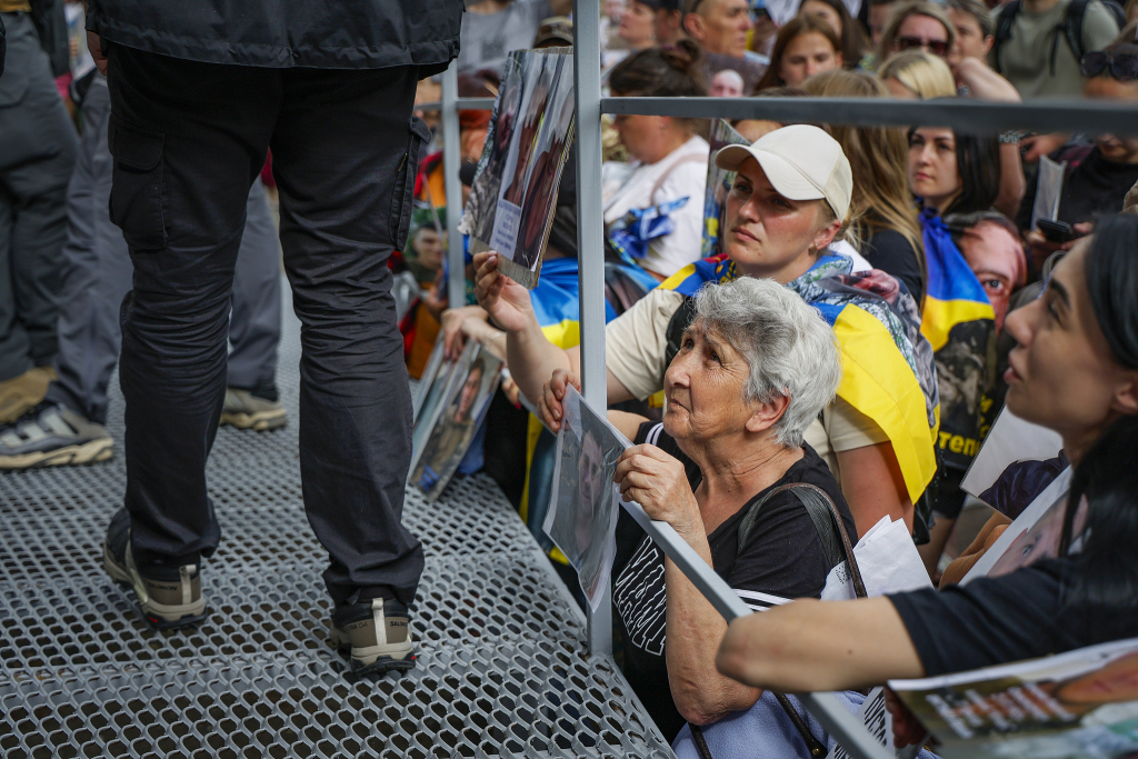 当地时间2025年6月9日,乌克兰切尔尼戈夫州,乌克兰与俄罗斯进行首批战俘交换,乌克兰士兵的家人正在等待团聚。