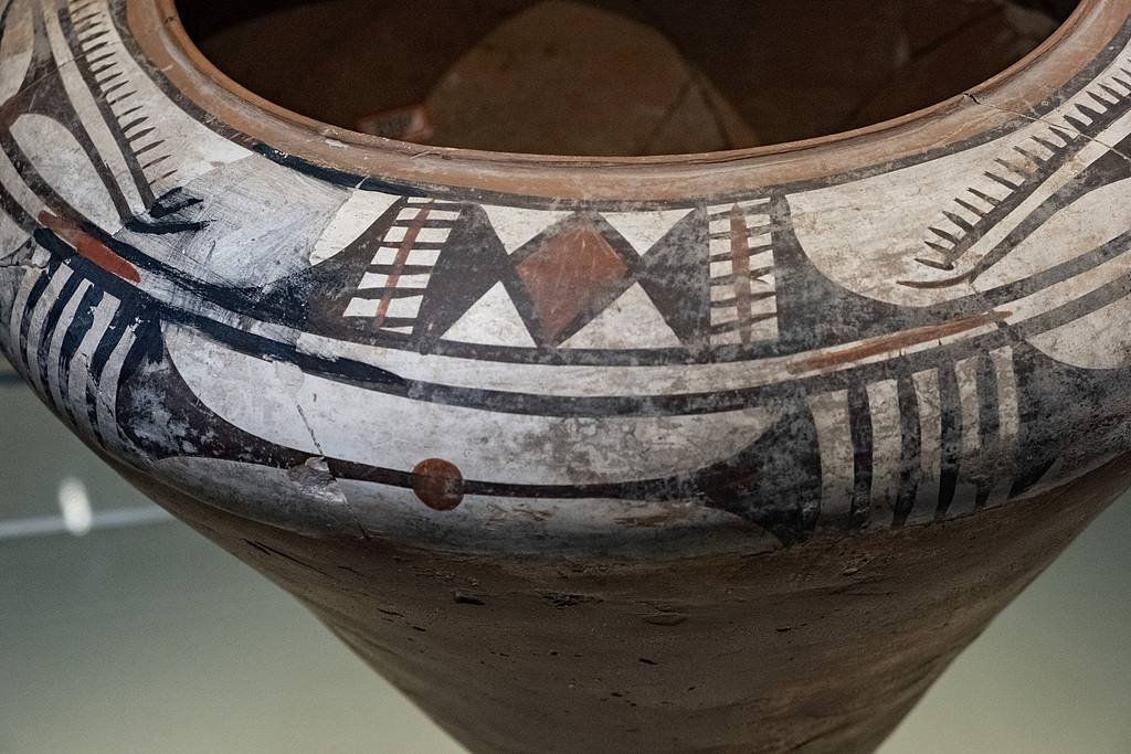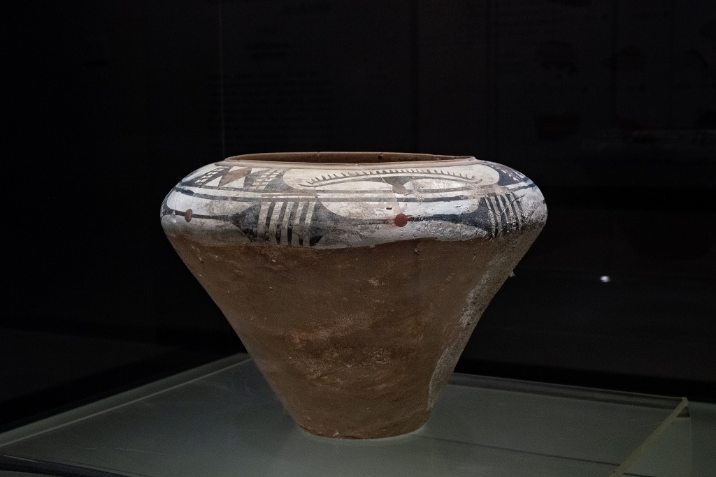 大河村遗址博物馆馆长胡继忠曾言:“就出土文物而言,大河村遗址最为典型、最具特色的出土遗物当数彩陶。”在新馆中,两件彩陶珍品尤为夺目。