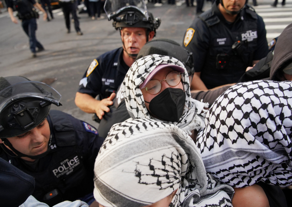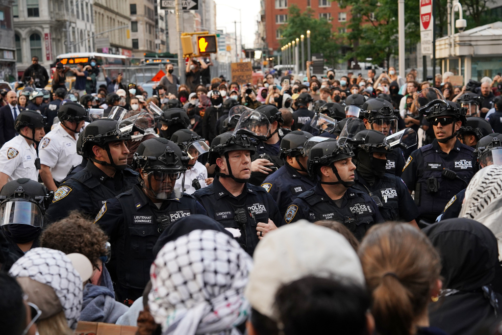 当地时间2025年6月10日,美国纽约,抗议者与纽约警察局警员发生冲突。
