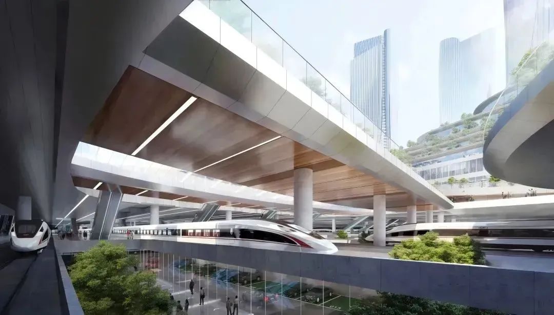 项目将按照“枢纽即城市”高度融合的原则,创新“路地”合作模式,打破传统高铁车站与城市枢纽配套设施的“红线”界限,构建“地下两层、地上三层”的立体慢行网络,对应“地铁连接、地下商业、城市界面、公共空间、上盖开发”的立体复合空间,实现站城一体。
