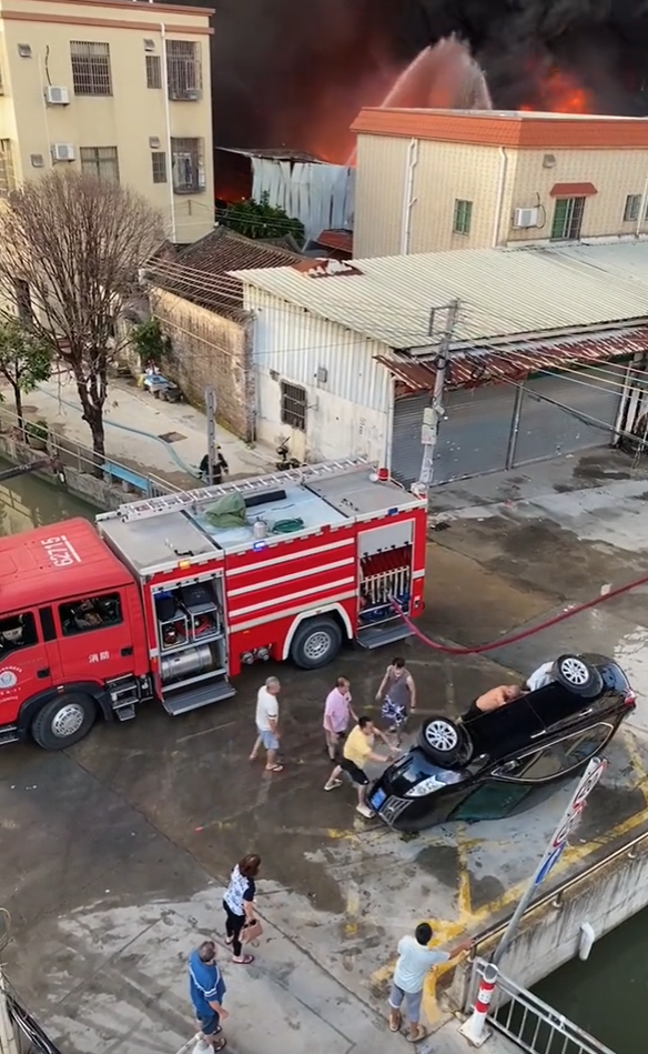 6月11日5时40分,广东中山一家废品站起火,眼见违停私家车堵塞了消防救援车,众人自发合力将违停车辆推侧翻,引发网友热议。